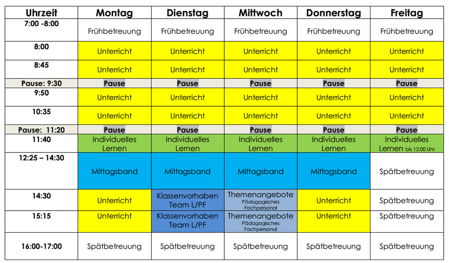 Stundenplan einer 1.Klasse im Ganztag (auch in Miteinanderklassen)